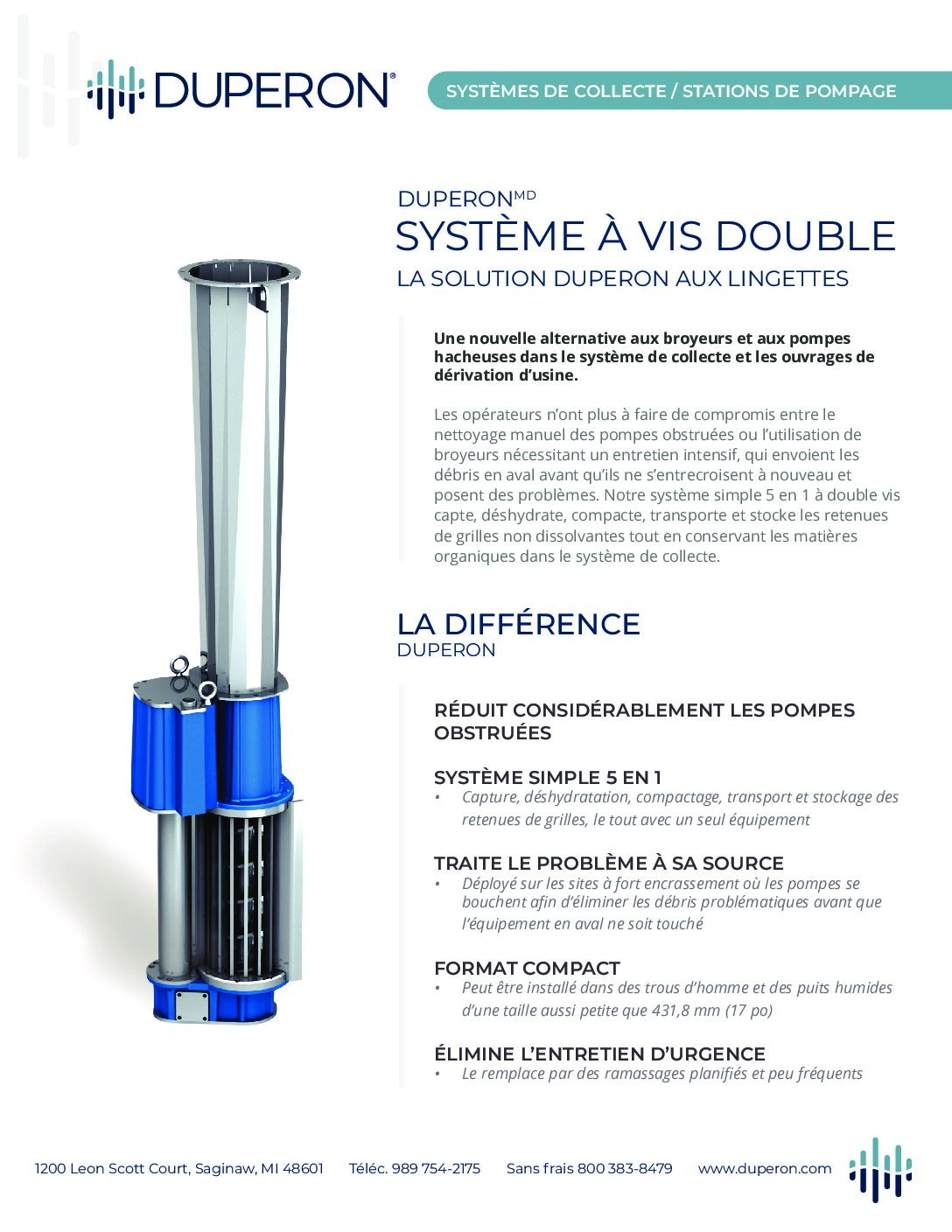 Duperon Dual Auger System eliminates clogged pumps caused by flushable wipes